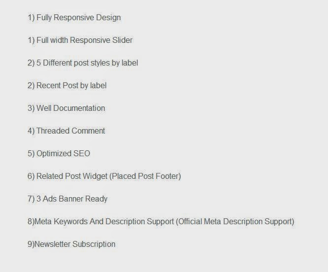 Dan yang paling mengagumkan adalah slider di bagian header yang berjalan secara otomatis. Menambah pesona template blogspot yang keren ini. Mungkin, untuk lebih melihat secaraq detail lengkapnya, ada baiknya anda melihat detail template ini di sini. Tapi penjelasannya dalam bahasa bule, aleas Inggris gitu. Kalau tidak bisa ya translate saja pake Google Translate.